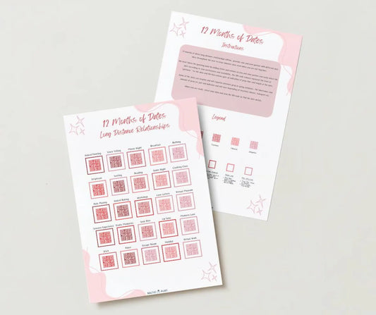 "12 Months of Dates - Long Distance Relationships" Printable Download Couples' Date Night Ideas