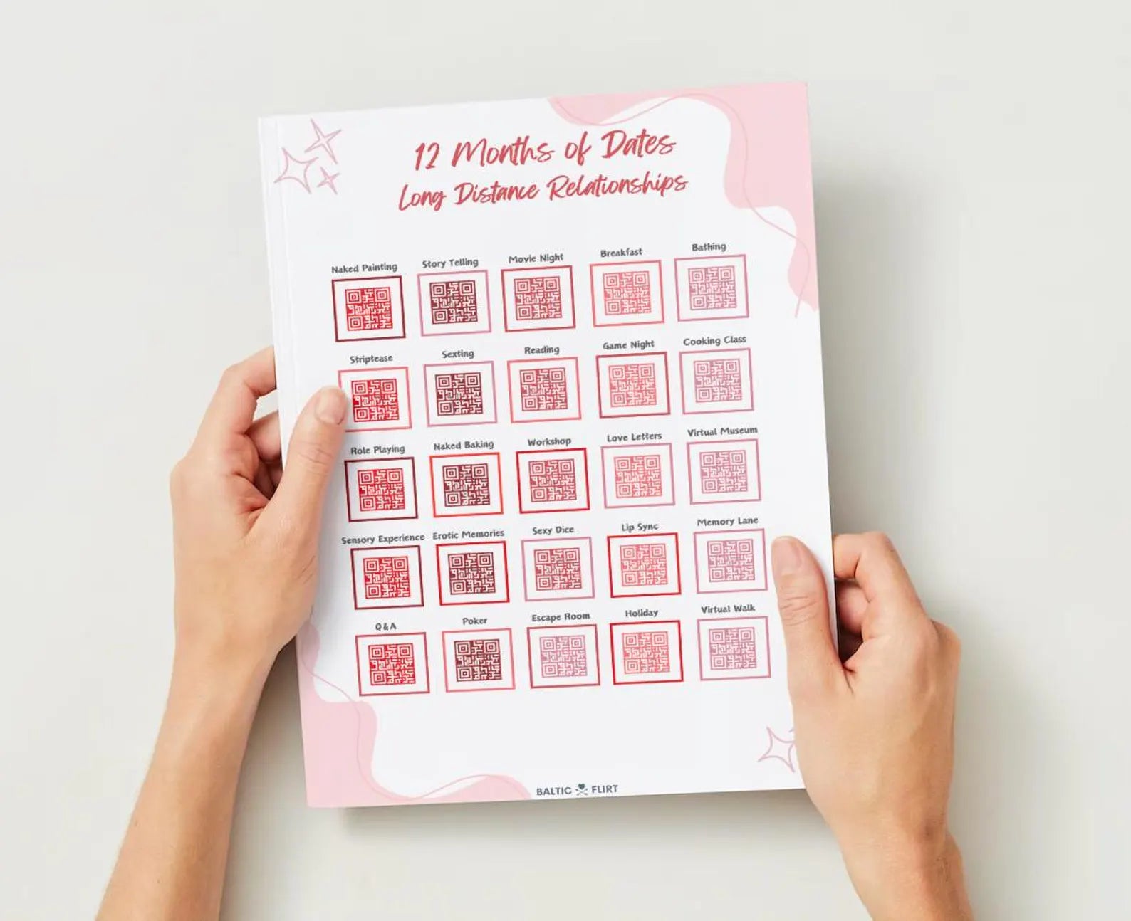 Whether you’re close together or far apart, 12 Months of Dates has the perfect set of ideas to keep your relationship exciting and connected. Start your journey today—scan the QR code and let the adventure begin! This special version includes date ideas that can be enjoyed together virtually, making distance disappear with each shared experience.