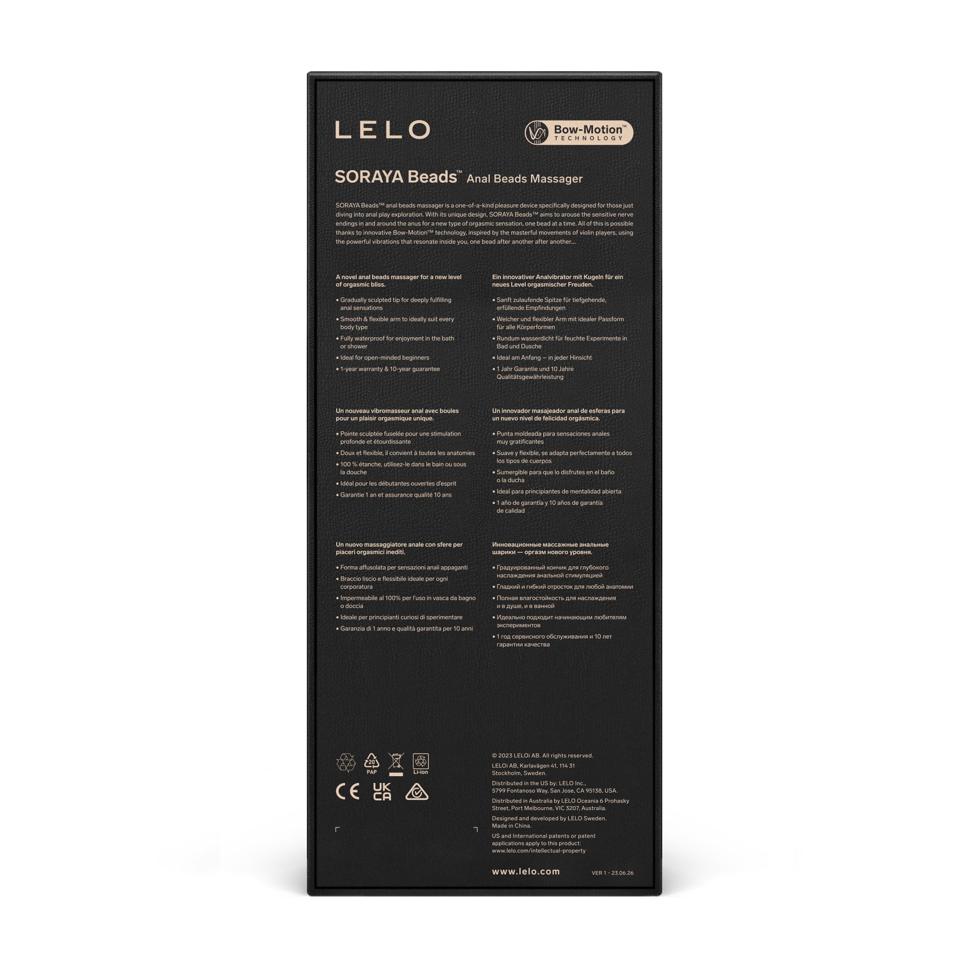 The Soraya Beads massager offers a unique design for arousing sensitive nerve endings in and around the anus, using innovative Bow-Motion technology inspired by violin players for powerful vibrations and orgasmic sensations.